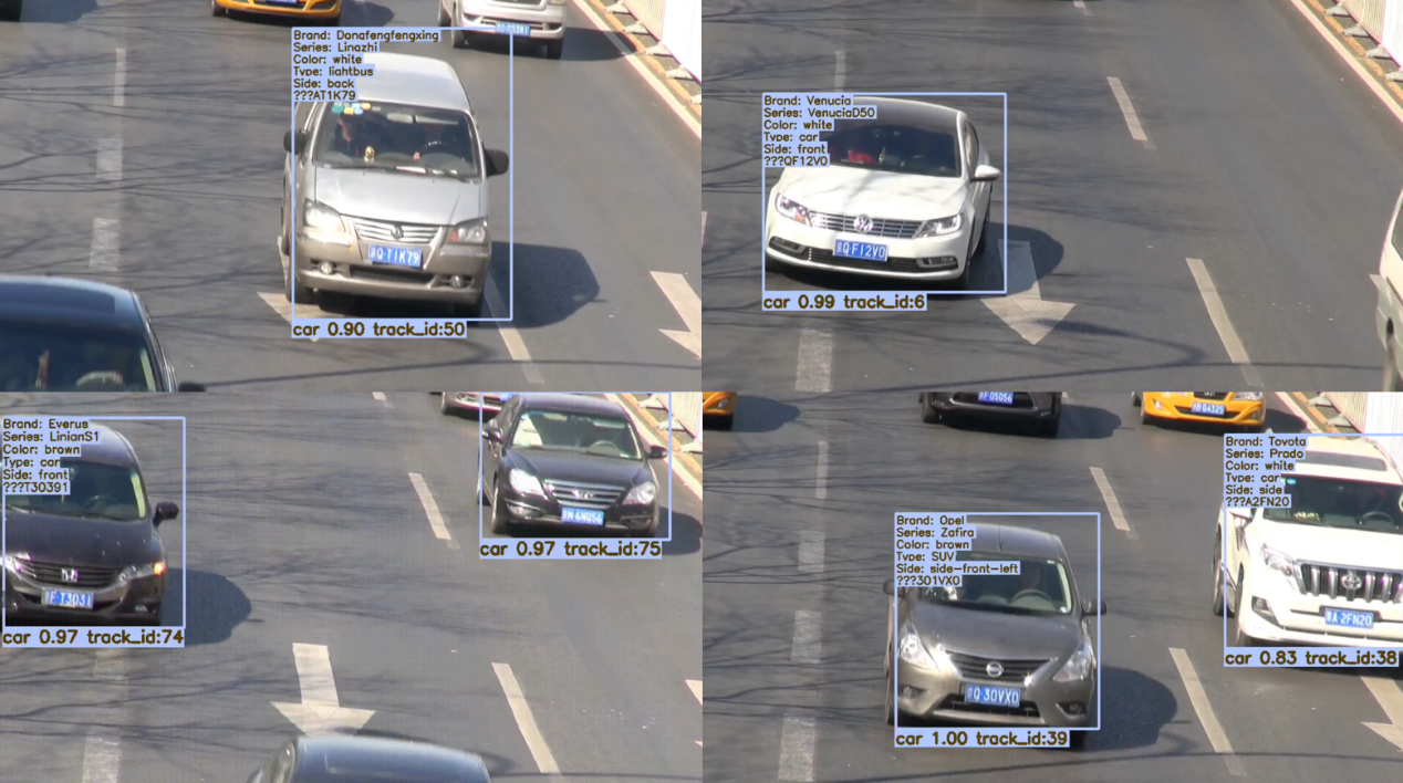为给客户提供定制化的整体解决方案,同时为展示寒武纪智能加速卡(MLU)的功能和性能,实现了一套包括视频解码、目标检测、目标追踪、车辆/行人属性识别、车牌识别等典型功能的视频结构化解决方案。